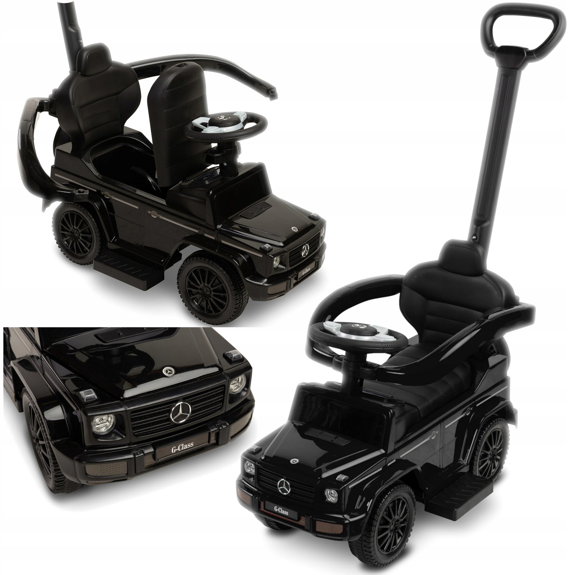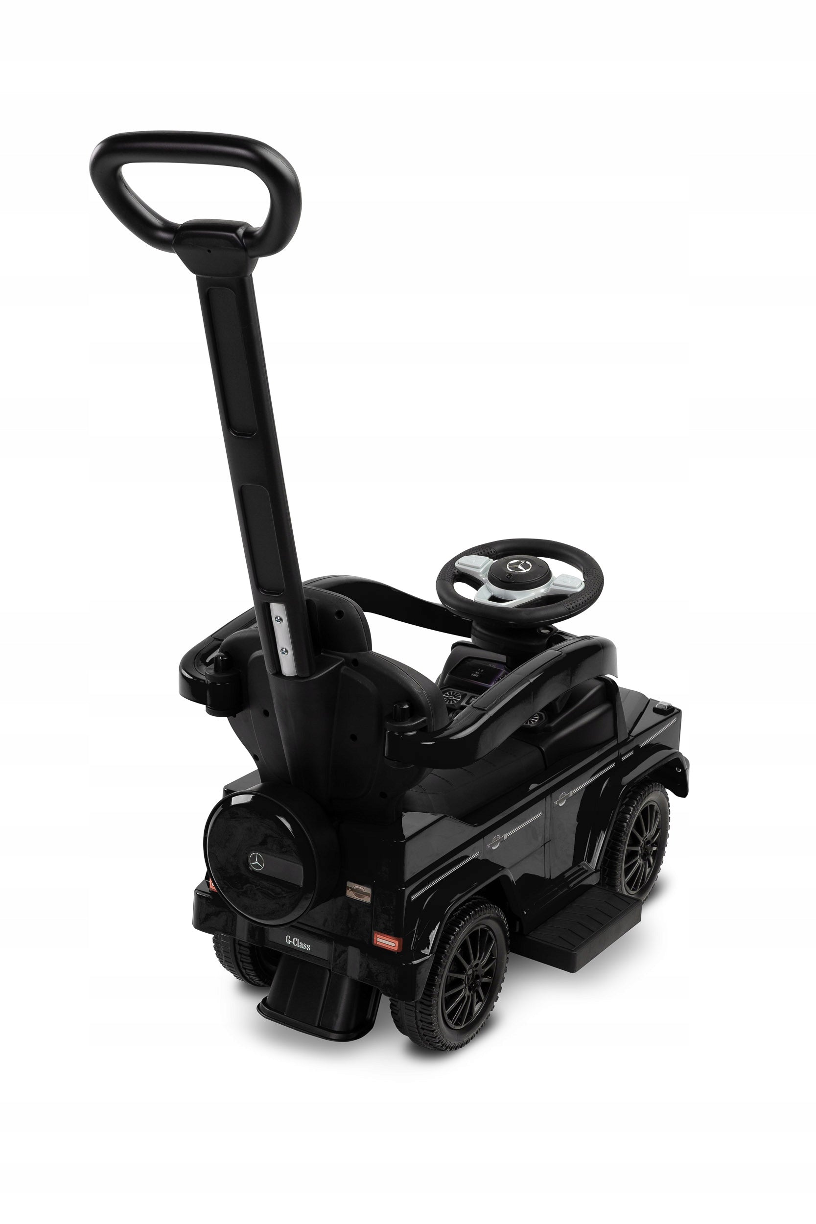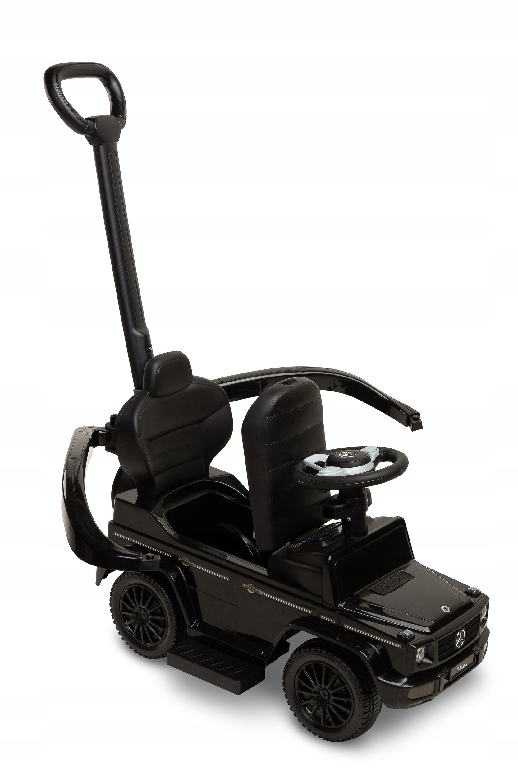 Šis elegantiškas juodas Mercedes G-Class automobilis-stūmiklis atrodo lyg tikras, tik pritaikytas mažiesiems. Aukštos kokybės medžiagos ir kruopštus dizainas garantuoja ilgaamžiškumą ir saugumą. Minkšta ekoodos sėdynė su atlošu ir patogūs, tyliai riedantys guminiai ratai užtikrina maksimalų komfortą kiekvienos kelionės metu, ar tai būtų žaidimai namuose, ar pasivaikščiojimai lauke.