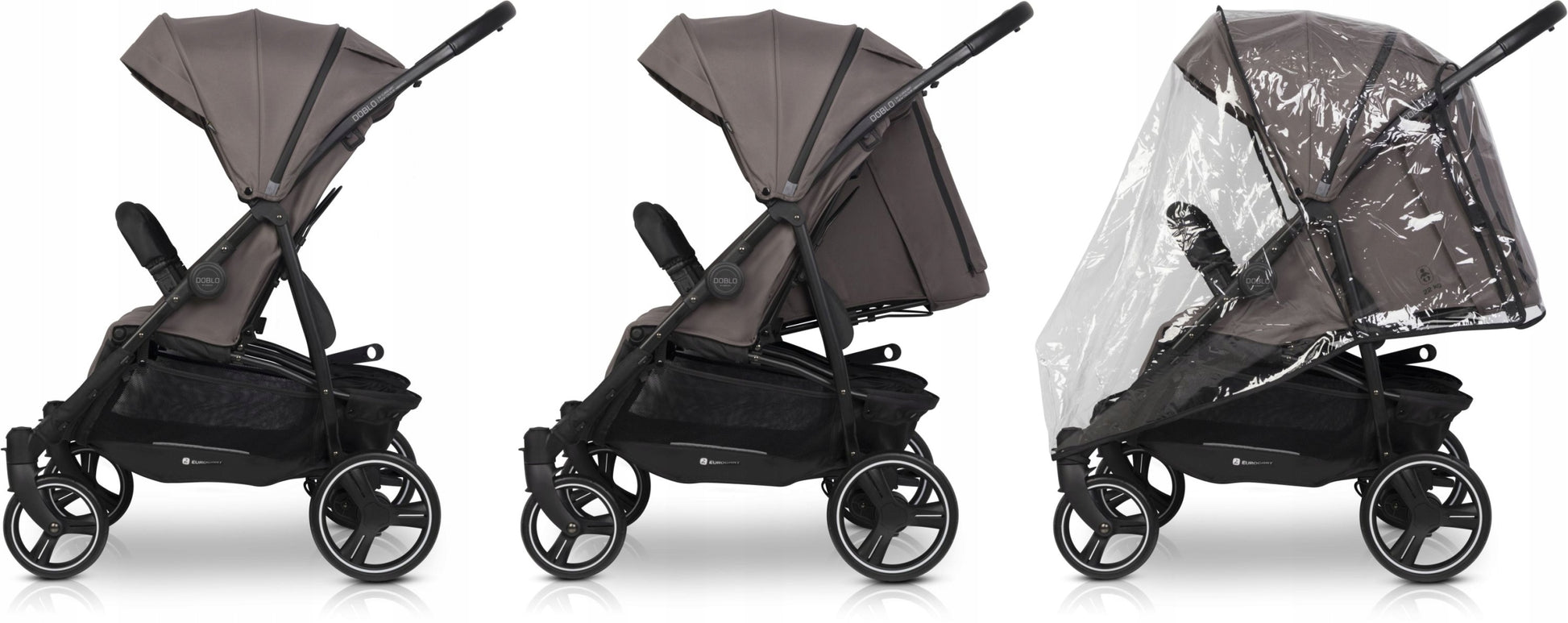 Euro-Cart DOBLO komplektacija suteikia viską, ko reikia patogiam ir saugiam važiavimui nuo pirmųjų dienų. Jau standartinėje komplektacijoje rasite viską, kas užtikrina funkcionalumą ir patogumą kasdienėse kelionėse su dviem mažyliais. Apgalvotos detalės leidžia lengvai pritaikyti vežimėlį įvairioms situacijoms.