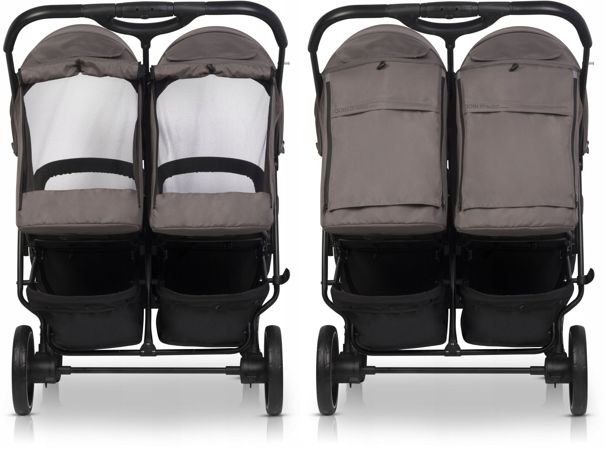 Vežimėlis DOBLO iš Euro-Cart yra specialiai sukurtas dviejų vaikų poreikiams patenkinti. Jis puikiai tinka tiek identiškiems dvyniams, tiek broliams ir sesėms, gimusiems kasmet. Kiekviena sėdimoji dalis gali atlaikyti iki 22 kg svorio, todėl vežimėliu galėsite naudotis daugelį metų. Bazinė DOBLO komplektacija apima dvi sėdimąsias dalis, idealiai tinkančias vyresniems vaikams. Tačiau vežimėlio universalumas atsiskleidžia jį transformuojant. Papildomai įsigiję dvi minkštas lopšio/įdėklo funkcijas, galite sukurti pilnavertį vežimėlį dviem naujagimiams. Taip pat įmanoma sukurti ir kombinuotą variantą: vieną sėdimąją dalį vyresniam vaikui (iki 22 kg) ir vieną lopšį jaunesniam (iki 9 kg). Toks lankstumas daro DOBLO vienu iš universaliausių vežimėlių rinkoje ir ekonomišką pasirinkimą, nes lopšiais paprastai naudojamasi apie 6 mėnesius, o sportine dalimi – iki 4 metų.