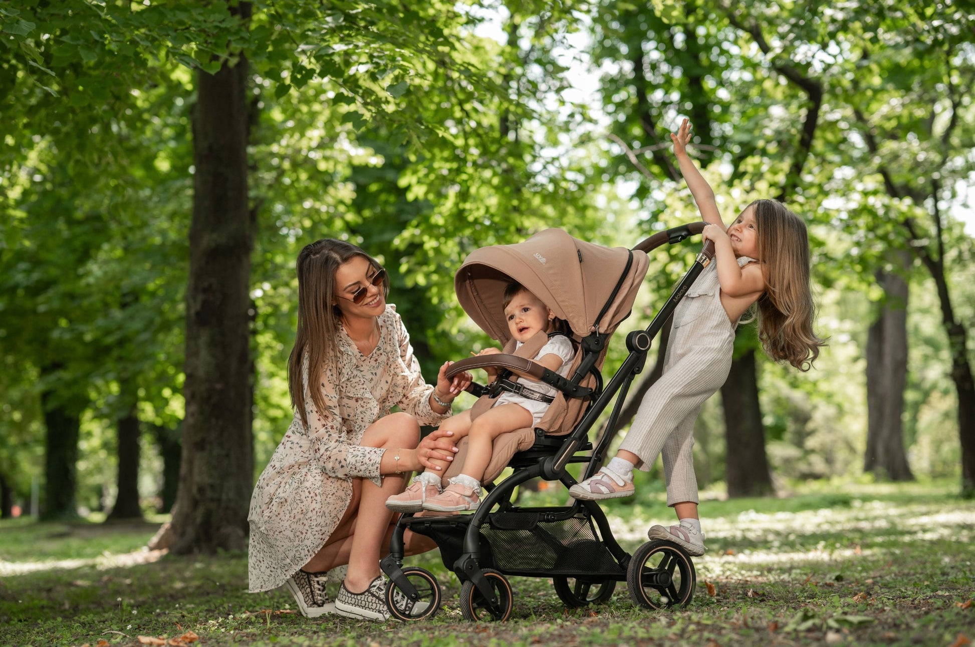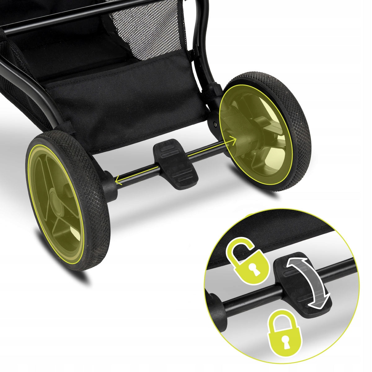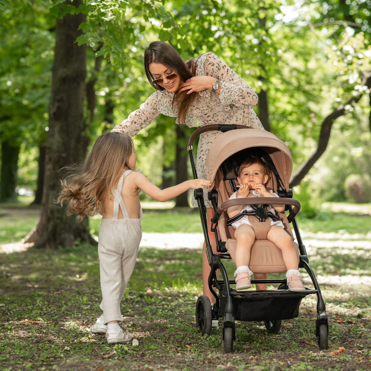 Vieno pasukimo mechanizmas leidžia lengvai keisti sėdimojo bloko padėtį, suteikiant kontaktą su tėvais arba leidžiant vaikui stebėti aplinką. Tvirta, tačiau lengva aliuminio rėmo konstrukcija užtikrina ilgaamžiškumą ir patogumą naudojant kasdien. Amortizuoti, negendantys guminiai ratai (priekiniai 360° su fiksacija) užtikrina sklandų važiavimą nelygiais paviršiais ir puikų manevringumą ankštose vietose, pavyzdžiui, prekybos centruose ar siaurose miesto gatvelėse.