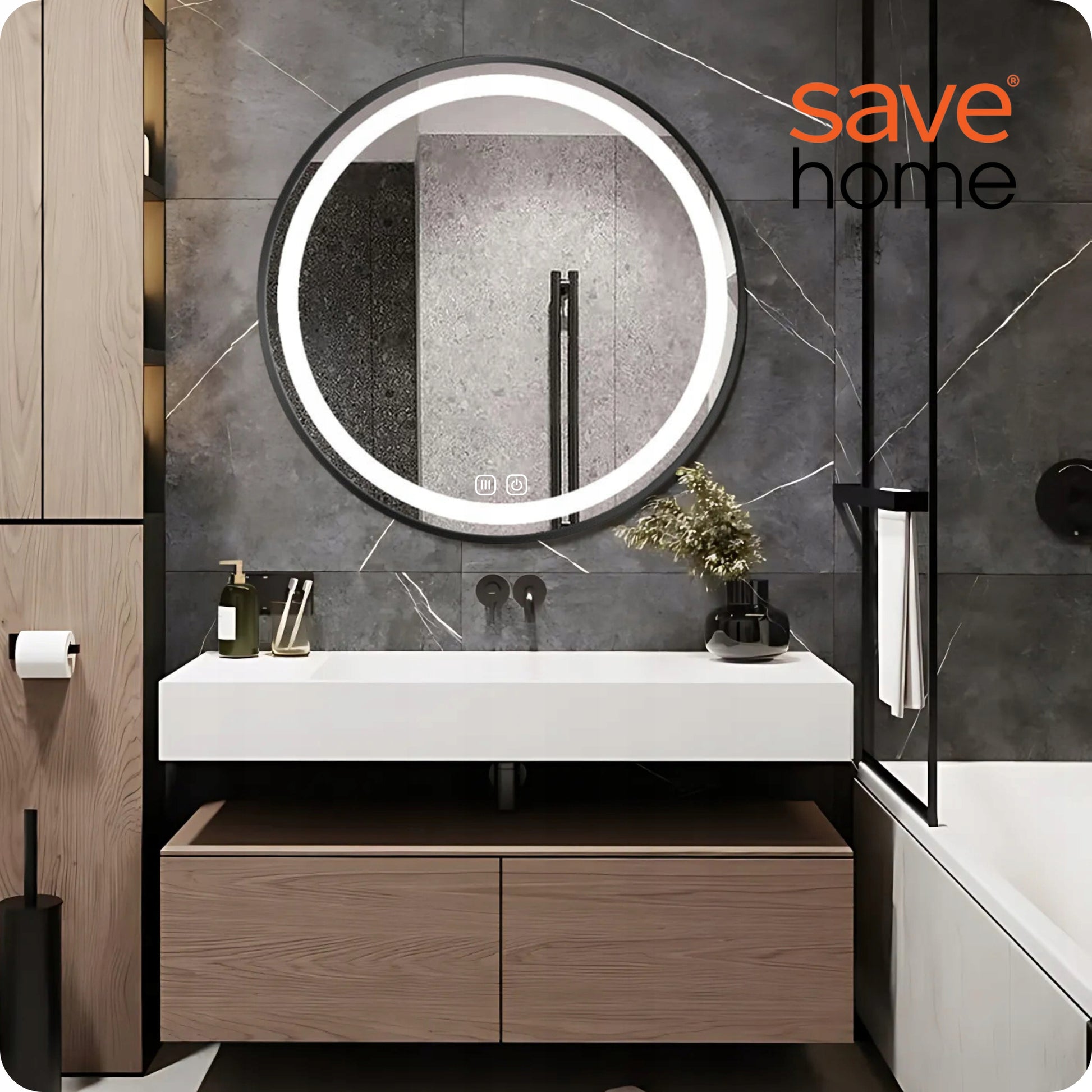 Pamirškite nepatogumus, kai po karšto dušo veidrodis visiškai rasoja. SAVE R®HOME LED veidrodis turi integruotą ANTI-FOG (be garų) funkciją, kuri efektyviai pašalina rasojimo problemą net ir aukščiausios drėgmės sąlygomis. Dėl šios technologijos Jūsų veidrodis visada išliks švarus ir skaidrus, suteikdamas aiškų vaizdą be jokių trukdžių. Tai ypač svarbu užtikrinant komfortą ir patogumą kasdienėje higienos rutinoje.