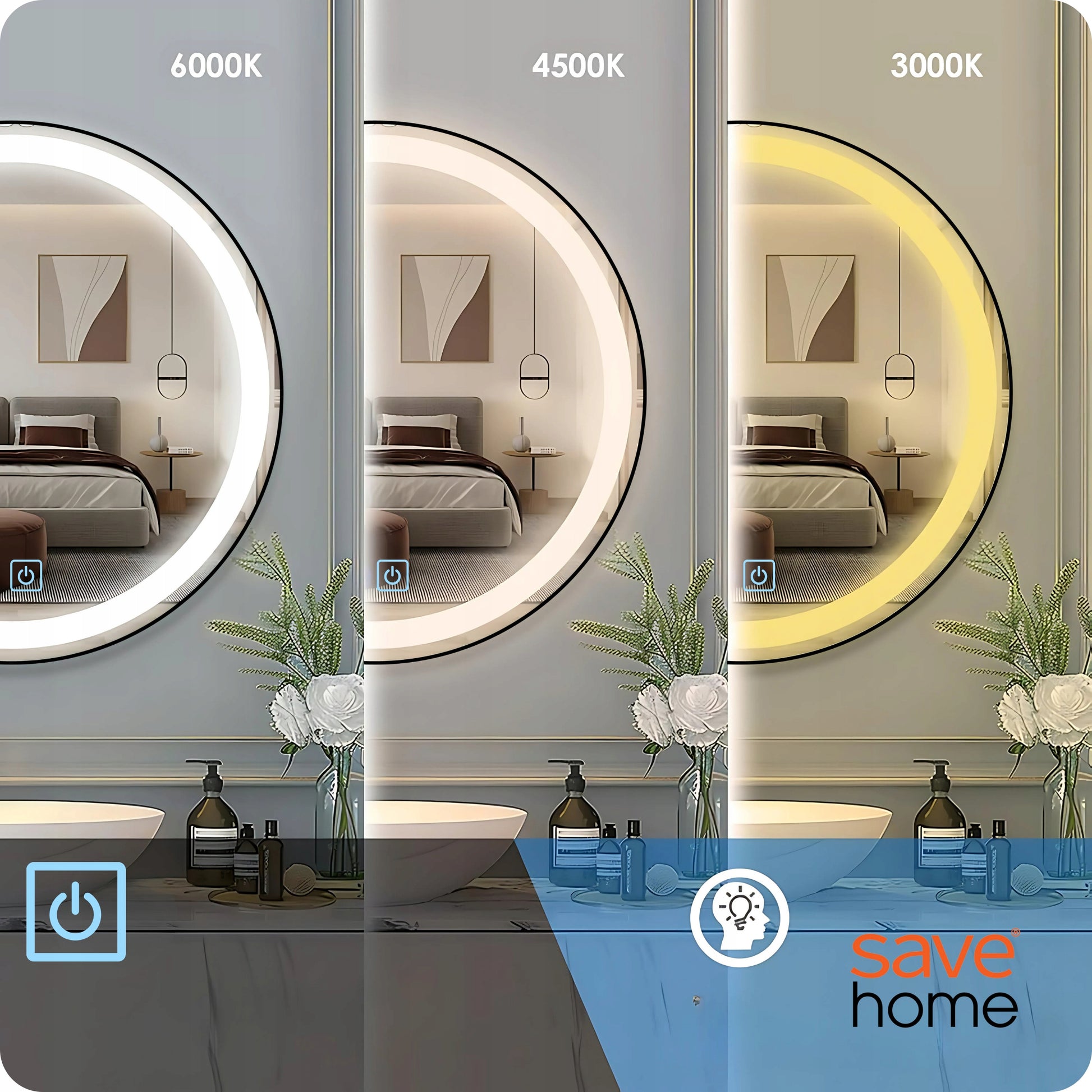 Suteikite savo vonios kambariui naują veidą su apvaliu LED veidrodžiu SAVE R®HOME. Šis 60 cm skersmens veidrodis ne tik puikiai atrodys bet kokioje erdvėje, bet ir suteiks Jums nepaprastą patogumą. Integruotas LED apšvietimas, liečiamas valdymo pultelis ir pažangios funkcijos, tokios kaip trijų spalvų temperatūros reguliavimas ir apsauga nuo rasojimo, paverčia jį nepakeičiamu Jūsų namų elementu. Elegantiškas dizainas su poliruotais kraštais ir galimybe pasirinkti apšvietimo spalvą bei intensyvumą leis sukurti tobulą atmosferą kiekvienai akimirkai.