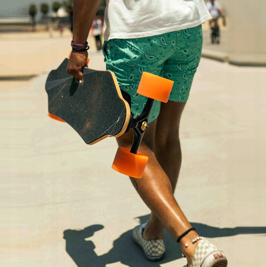 WowGo 3E – tai galingas ir patikimas elektrinis longboardas, sukurtas kasdieniam judėjimui mieste ir įdomių trasų tyrinėjimui. Dvigubi 650 W varikliai ir patikima valdymo sistema garantuoja sklandų įsibėgėjimą ir stabdymą. Lenta pagaminta iš lankstaus kanadietiško klevų, bambuko ir stiklo pluošto mišinio – tai suteikia gerą amortizaciją. Komplekte gausite ratų rinkinį 90 mm dydžio, ergonomišką nuotolinio valdymo pultelį su ekranėliu, įkroviklį, įrankius ir instrukciją – viskas, ko reikia, kad galėtum važiuoti iškart.