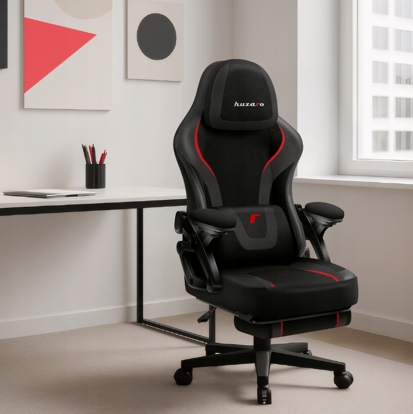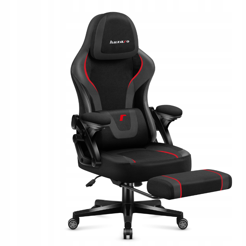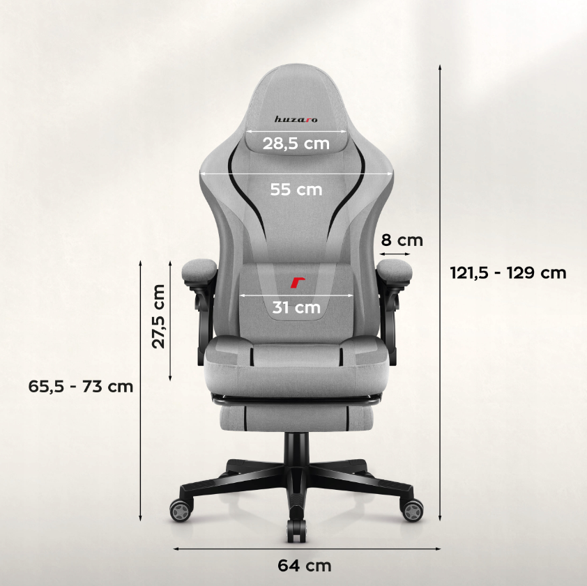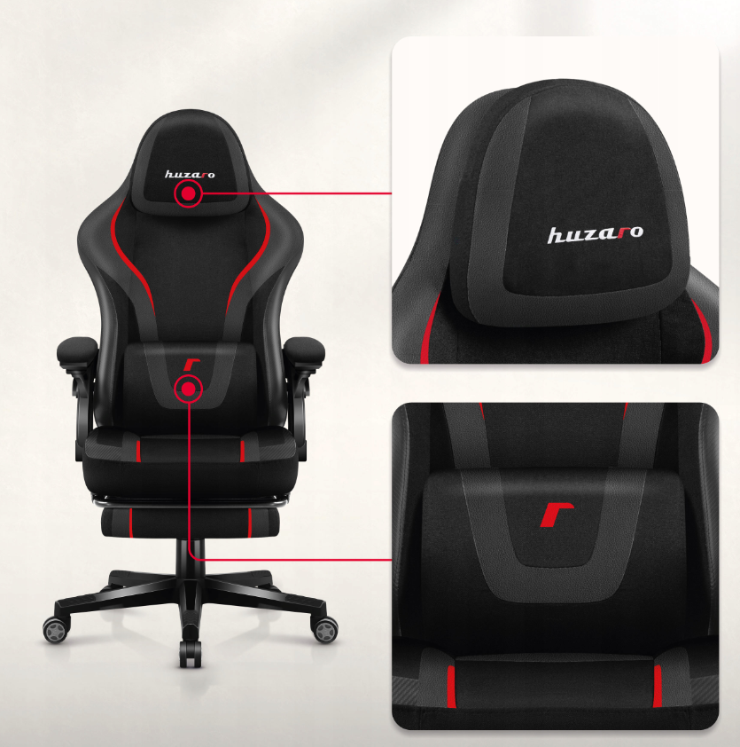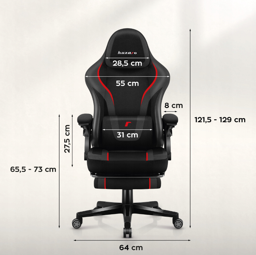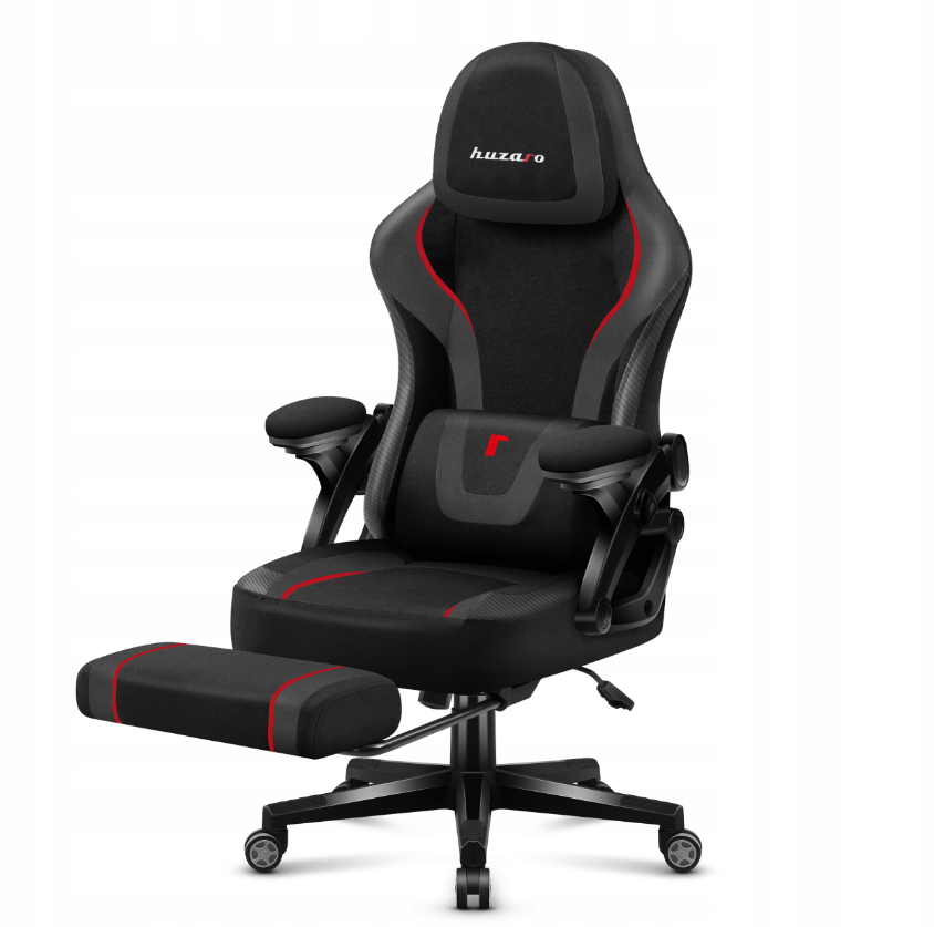 Huzaro “Carbon” serijos žaidimų fotelis – tai tvirta plieno konstrukcija, patrauklus anglies pluošto stilius ir gausybė funkcinių savybių: reguliuojamas galvos atlošas, liemens ir kaklo pagalvėlės. Kėdė turi ištraukiamą padą, galima patogiai ištiesti kojas. Išlaiko iki 130 –140 kg apkrovą, 50 mm poliuretano ratukai saugantys grindis. Audiniai – patvarūs, atsparūs dilimui, prižiūrimi lengvai.