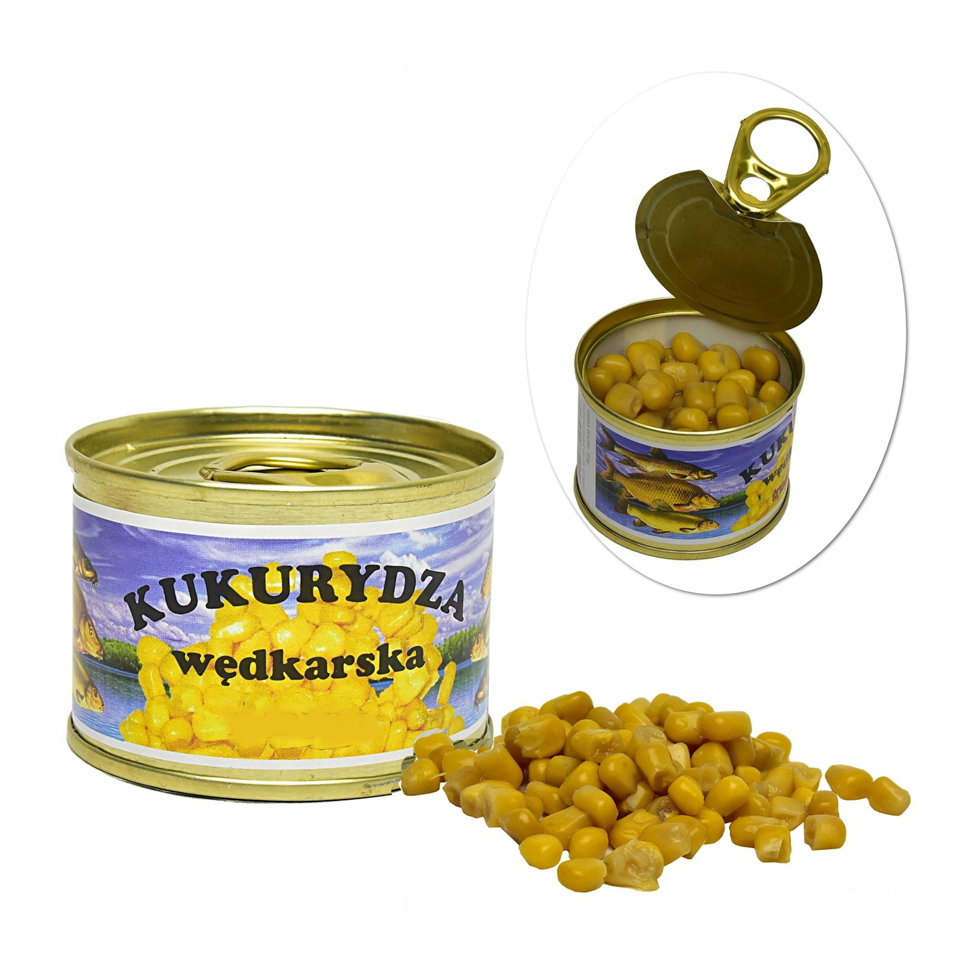 - Kukurūzų žvejybinis jaukas skardinėje (85g).